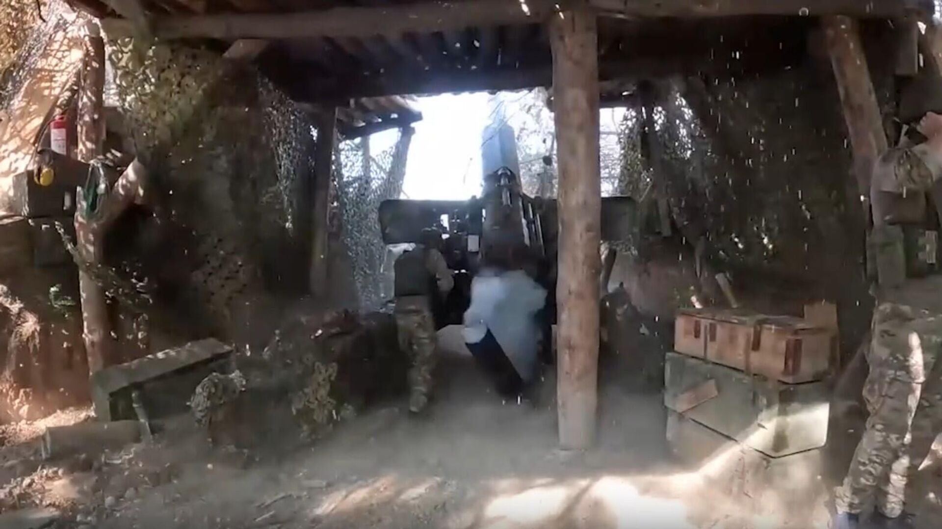 Минобороны России показало кадры боевой работы расчетов буксируемых пушек "Гиацинт-Б" 1-й гвардейской танковой армии группировки войск "Запад" в зоне спецоперации.