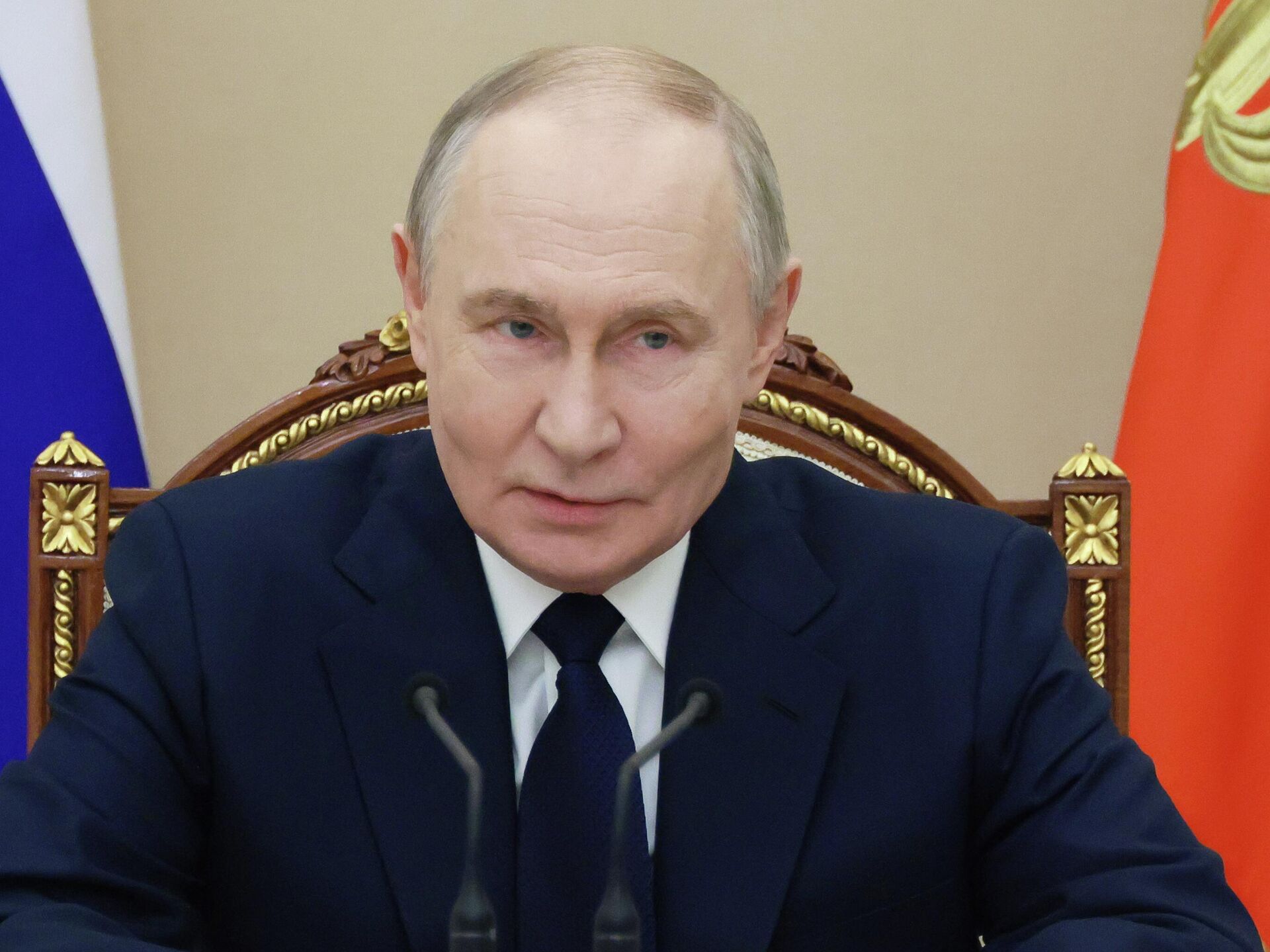 "Командующие группировками войск доложили сейчас обстановку, и прошу продолжить выполнение задач специальной военной операции в соответствии с замыслами и планами Генерального штаба", — сказал Путин.