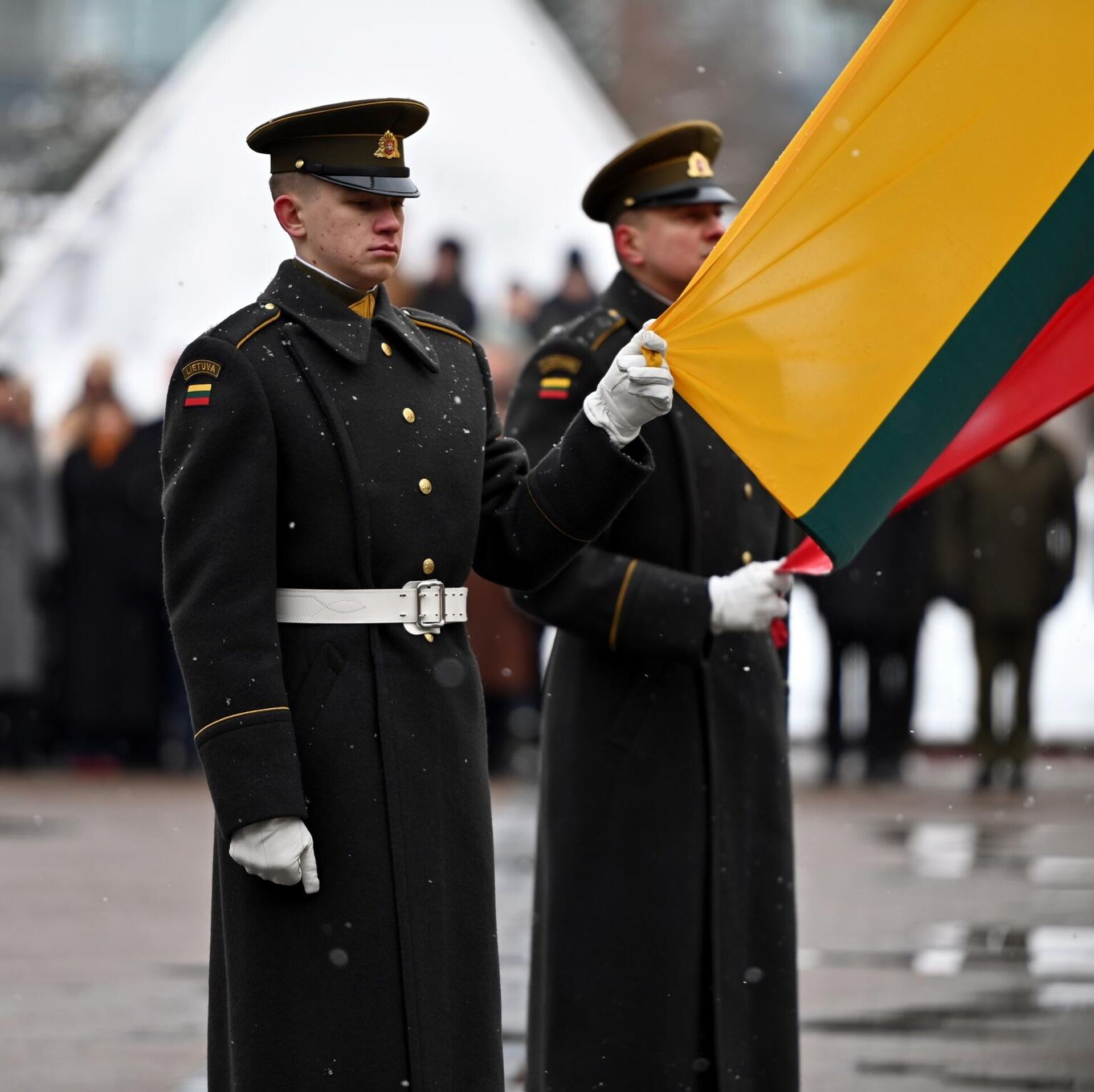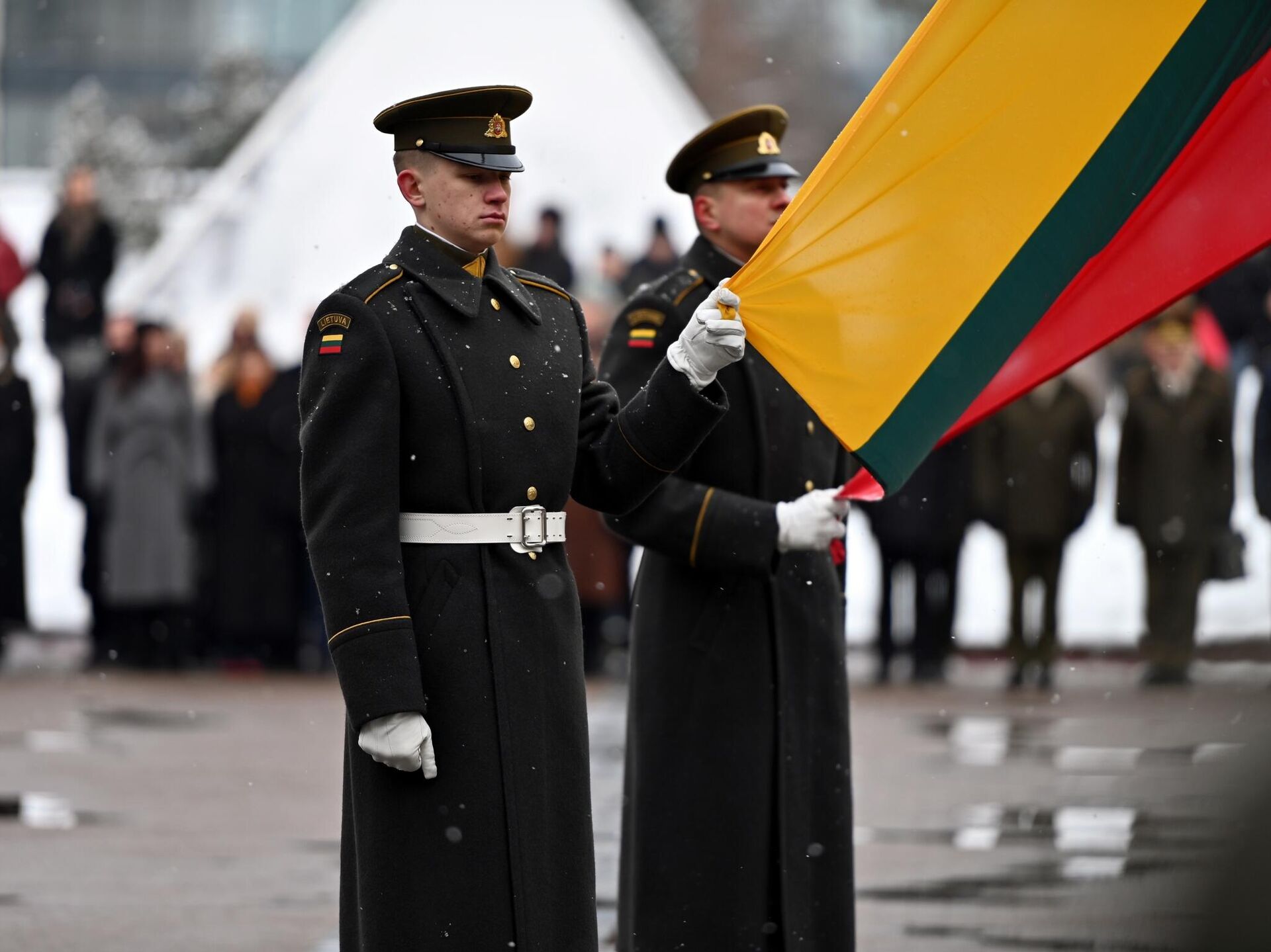 На фото: церемония поднятия флага на площади Независимости в Вильнюсе.