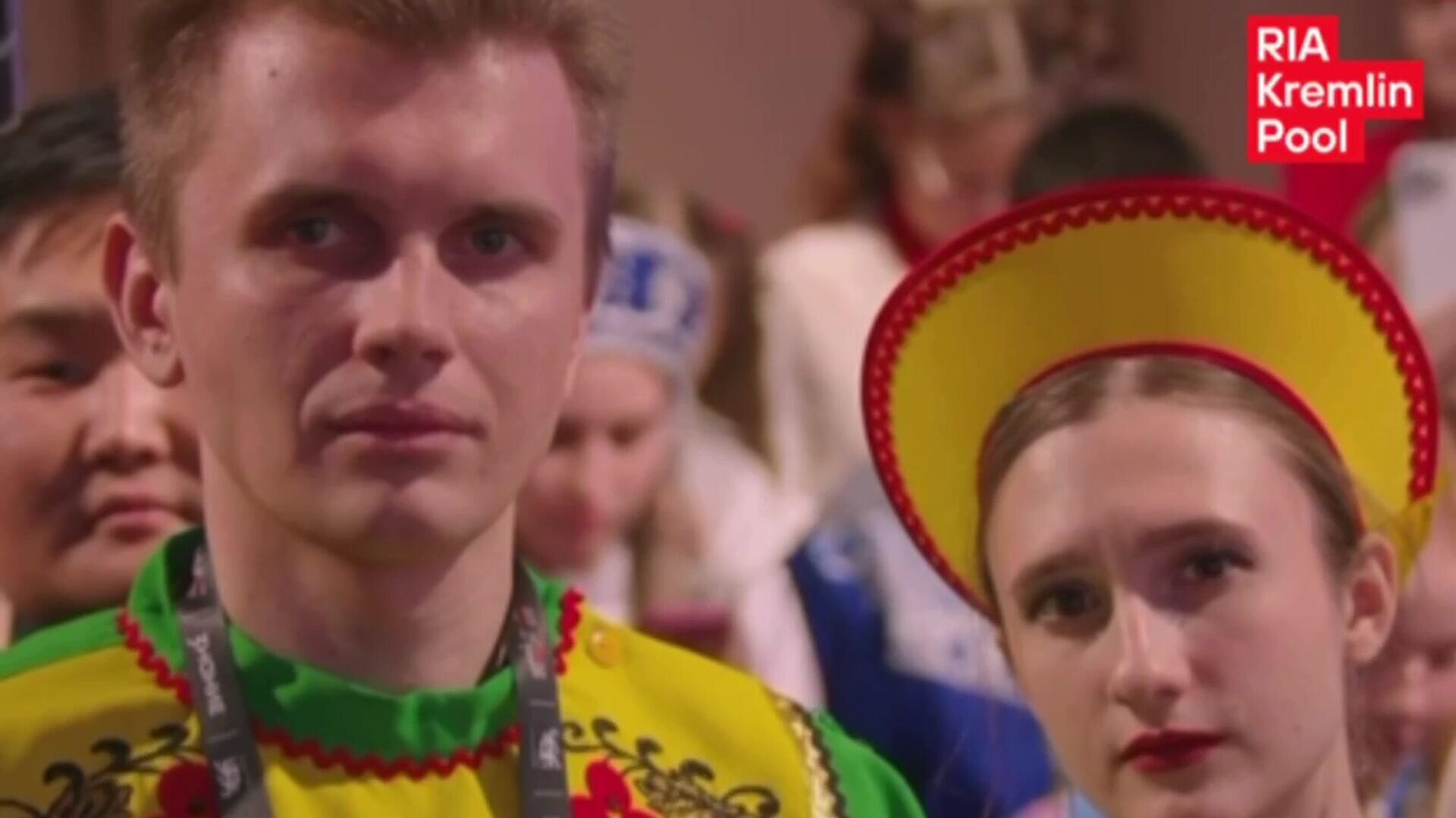 Российский лидер принял участие в торжественной церемонии открытия Года единства народов России, которая прошла в Национальном центре "Россия" в рамках марафона "Россия - семья семей" общества "Знание".