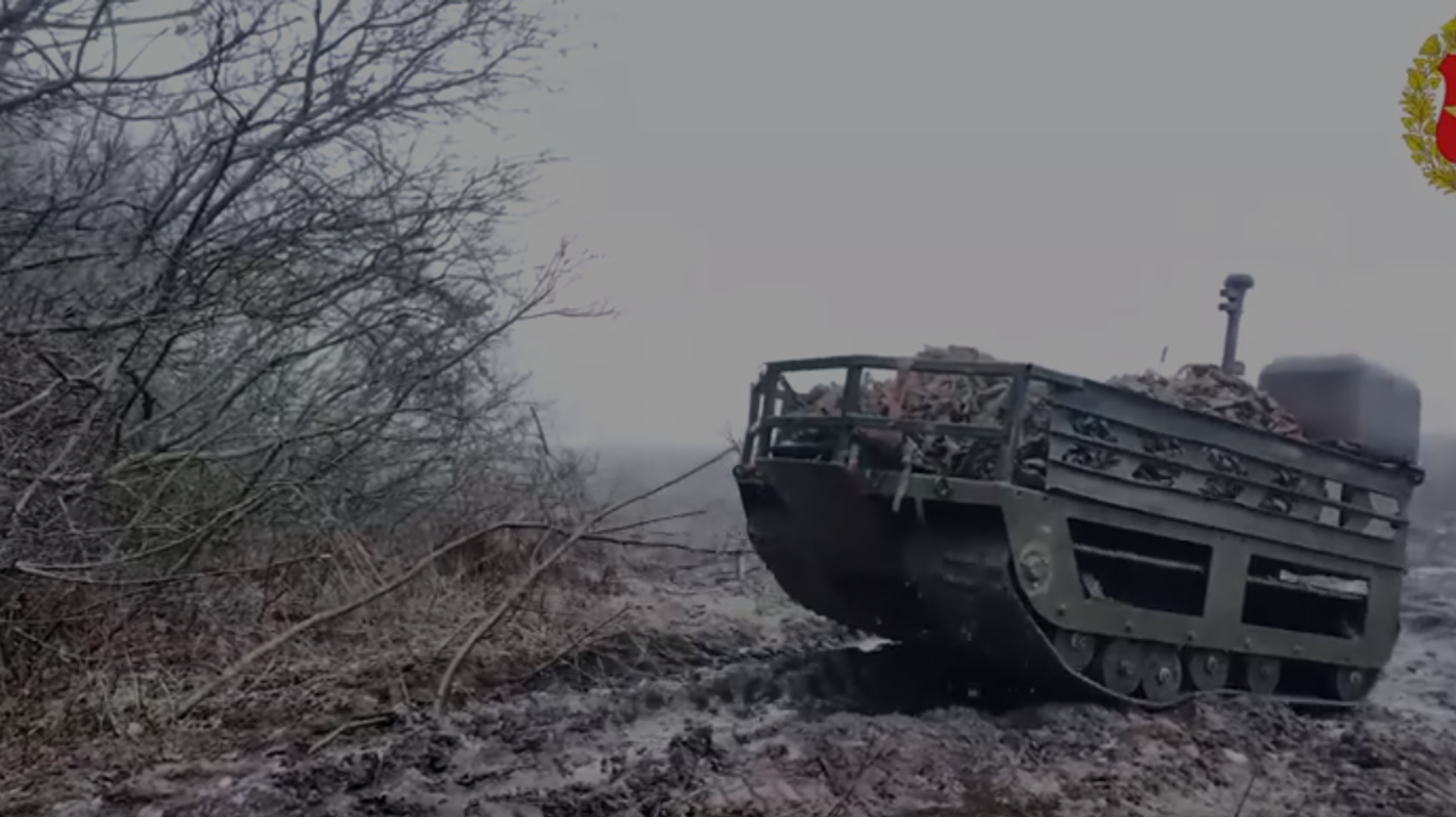 Российские бойцы применяют наземные робототехнические комплексы "Курьер" для перевозки техники, разминирования дорог и отвлечения внимания противника