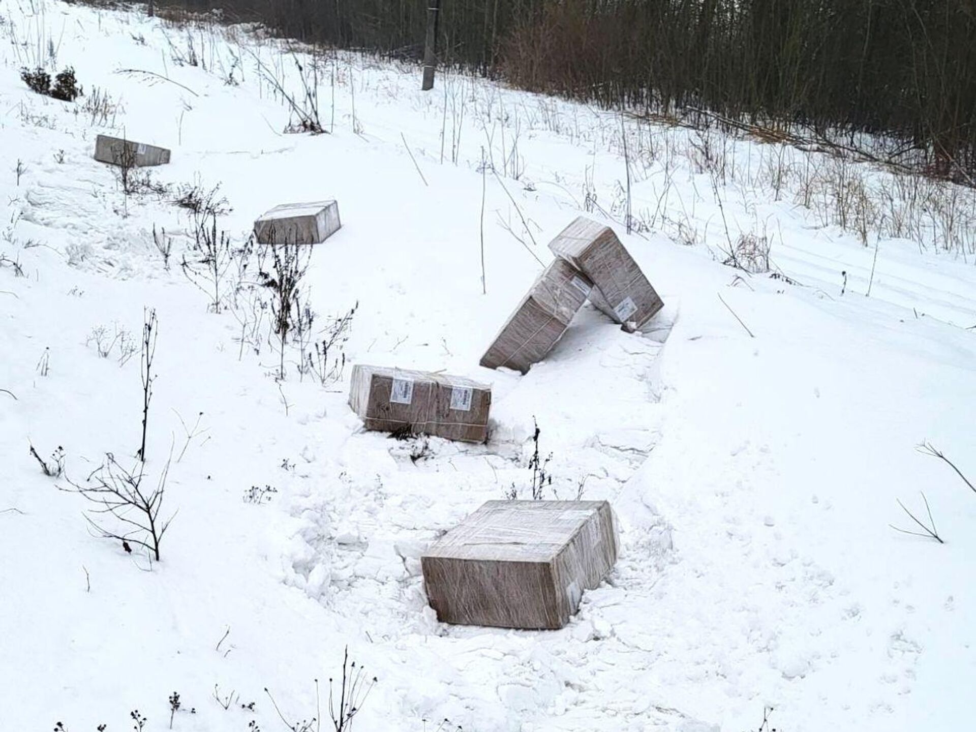 Всего возле железнодорожных путей было найдено 50 картонных коробок с белорусскими контрабандными сигаретами NZ Gold.