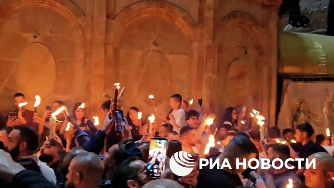 ВИЛЬНЮС, 11 апр – Sputnik. Благодатный огонь сошел в храме Гроба Господня в Иерусалиме,