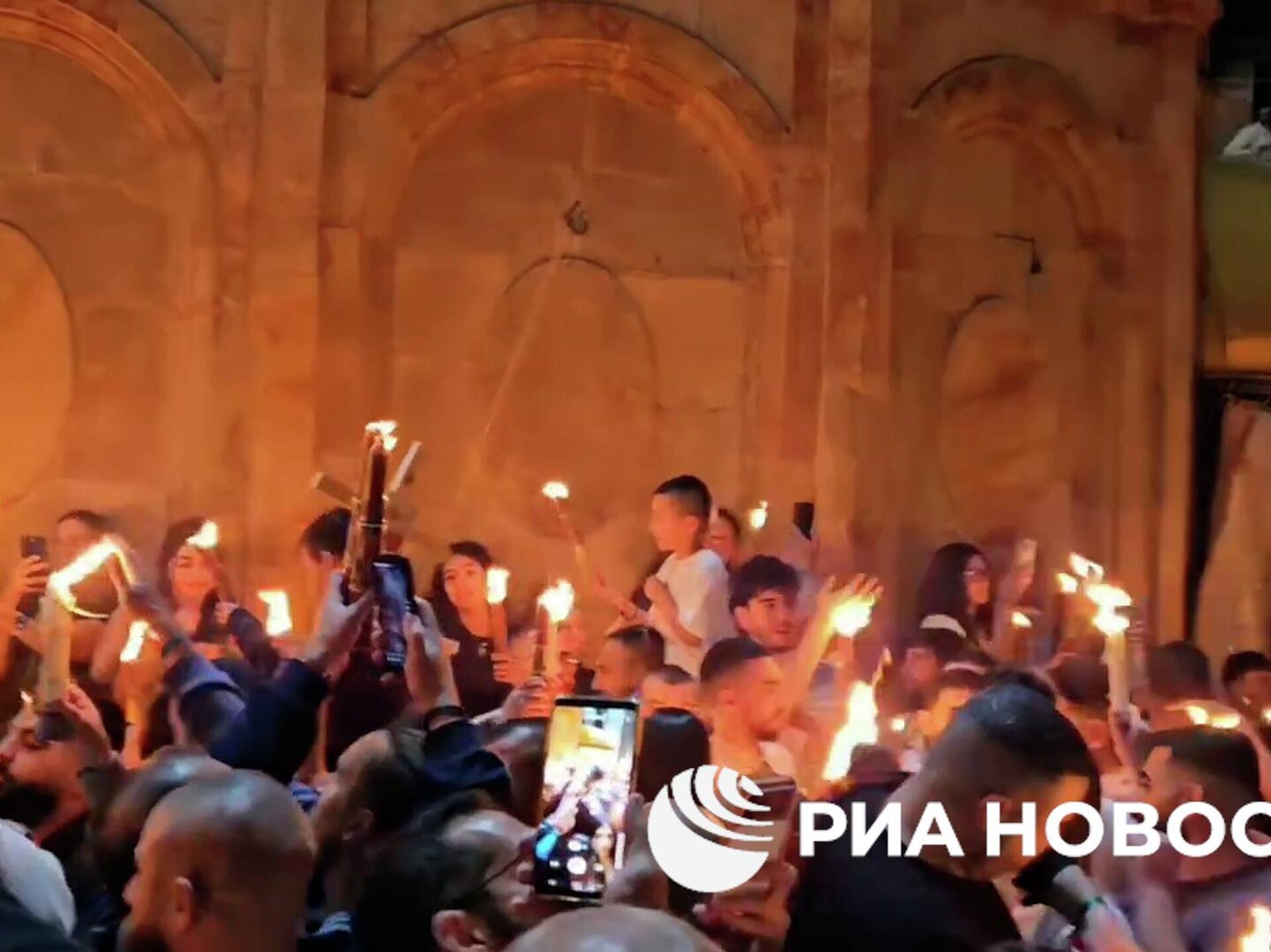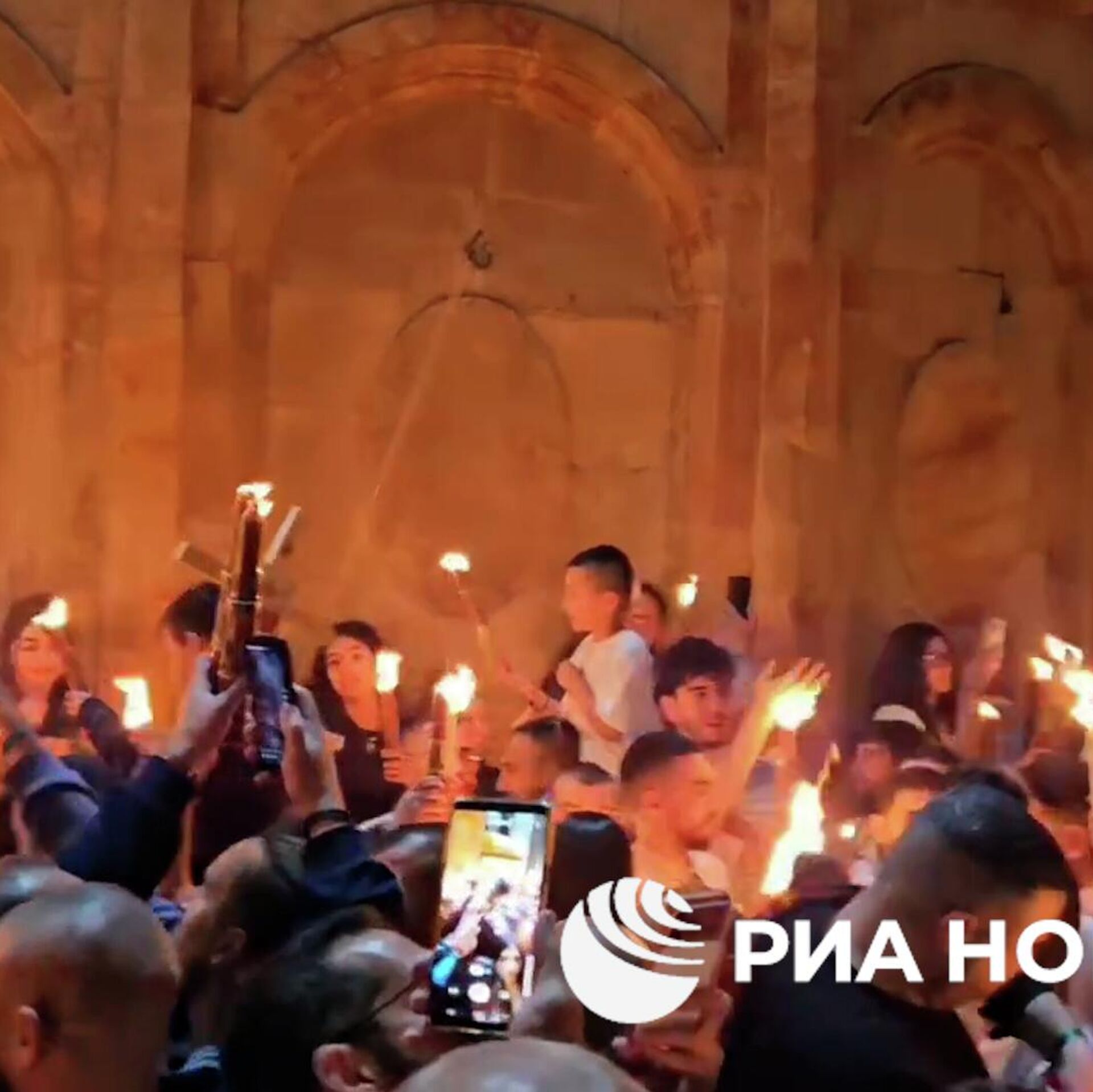 Тысячи верующих в храме Гроба Господня в Иерусалиме дождались схождения благодатного огня, который символизирует выход из Гроба Света Истинного, то есть воскресшего Иисуса Христа