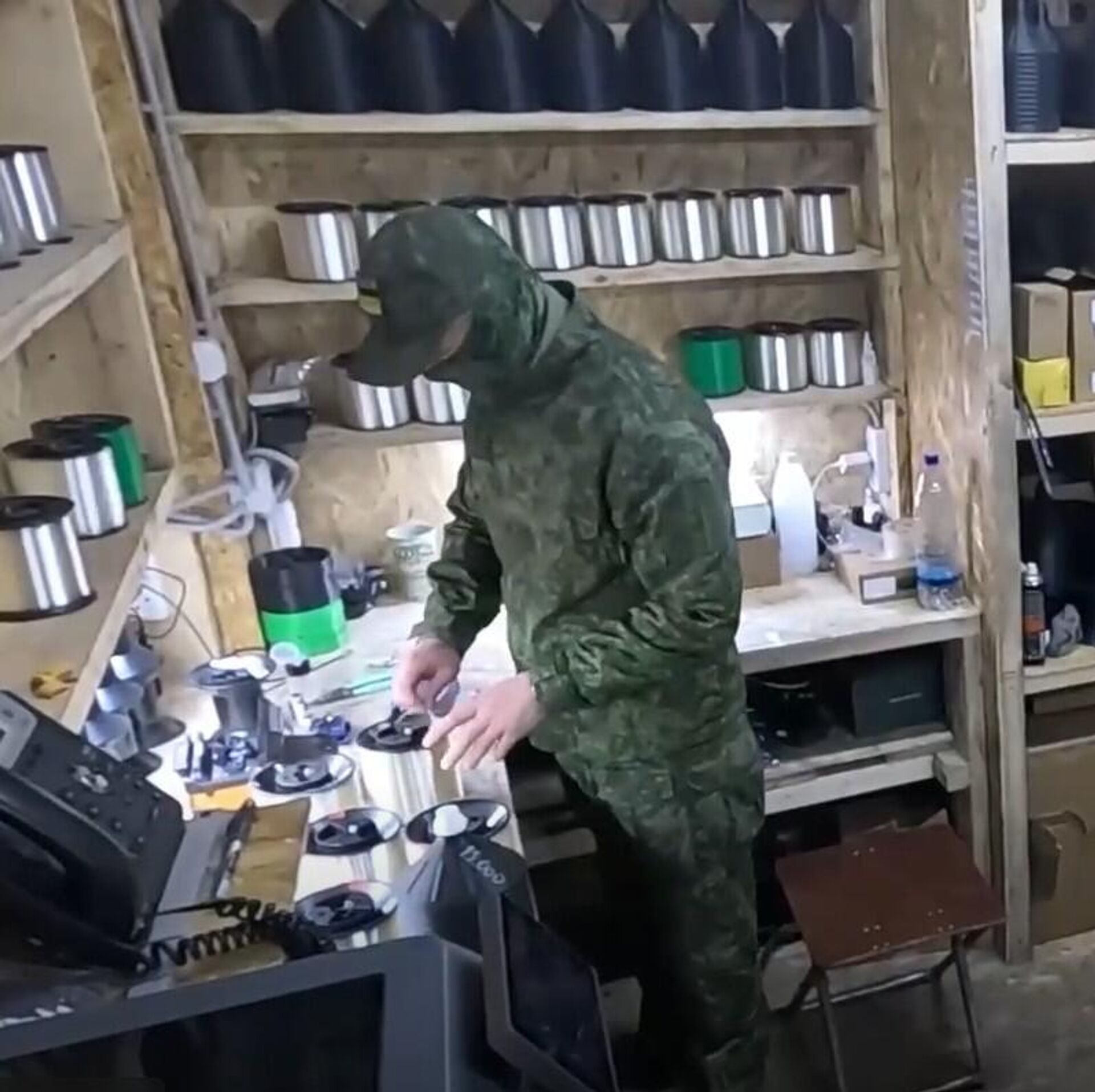 "В полевой мастерской налажен полный технологический цикл: сборка дронов; прошивка и калибровка; намотка катушек с оптоволокном; сварка оптоволокна", — говорится в сообщении.