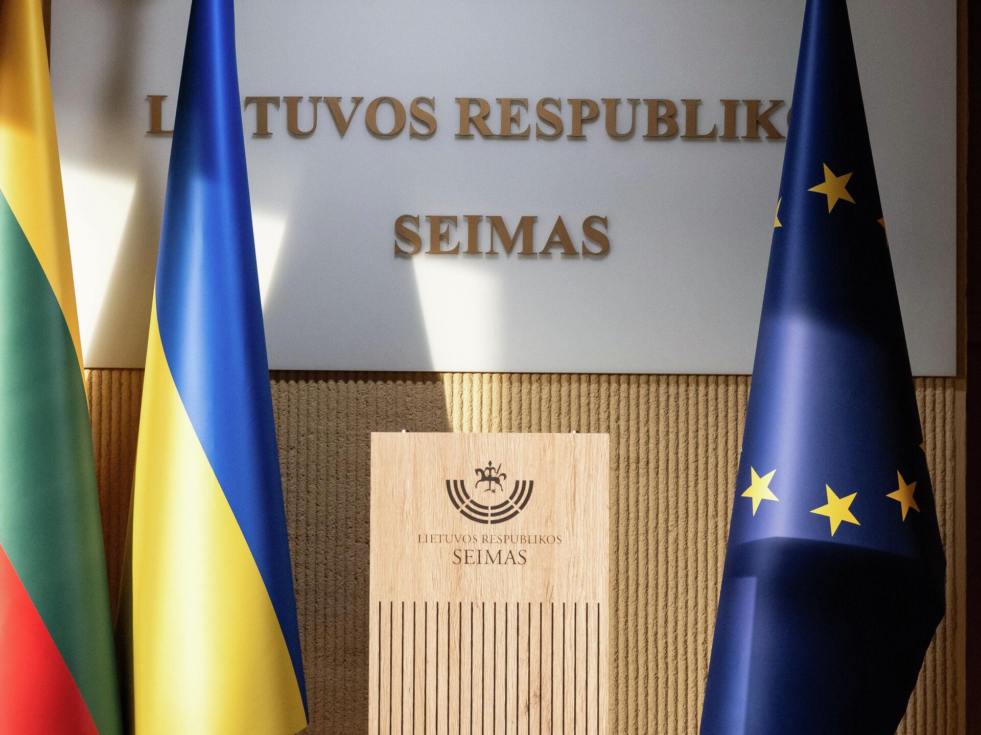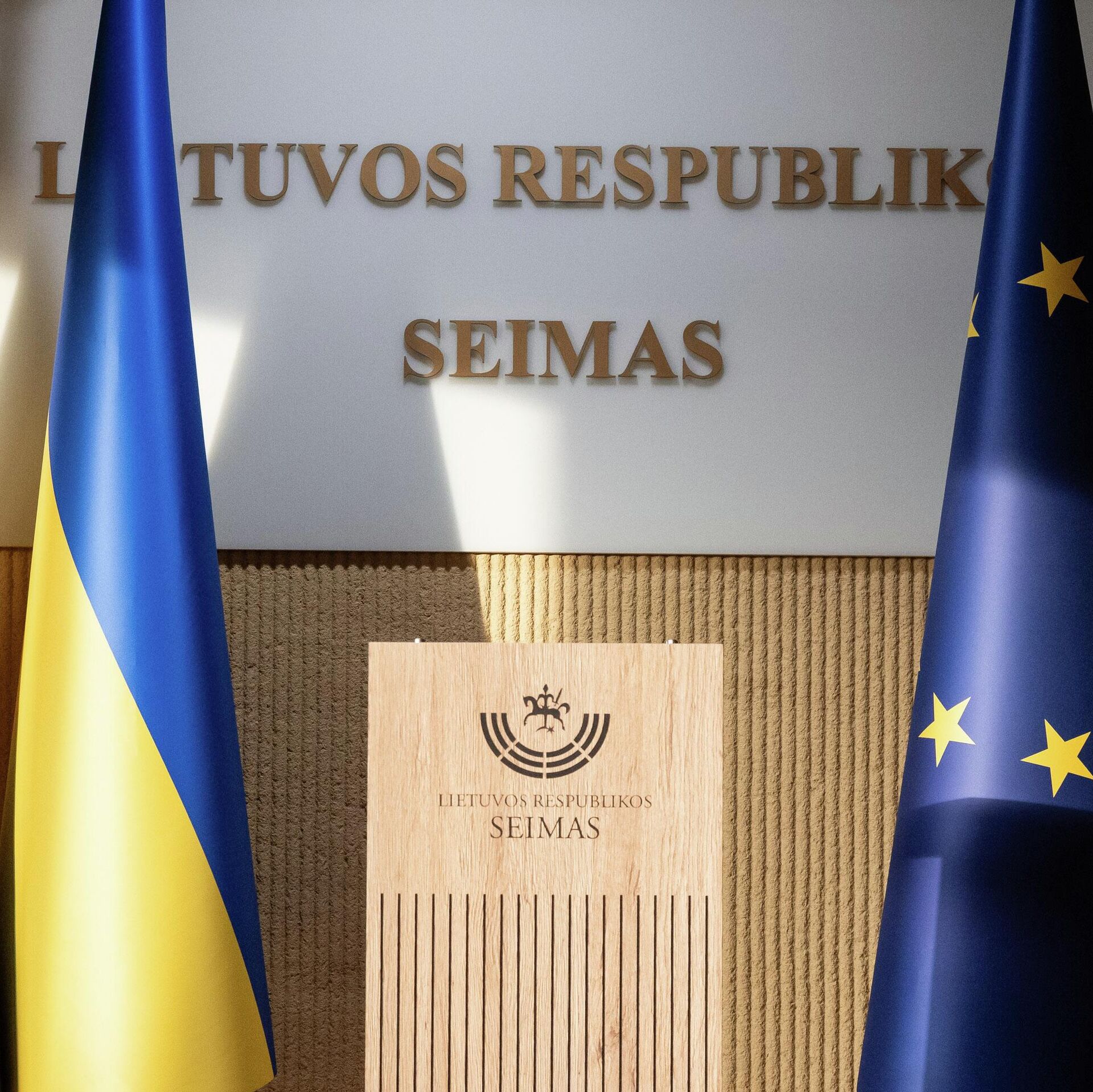Канцлер Сейма Альгирдас Стончайтис признал, что никаких "официальных решений" для вывешивания флага Украины в зале заседаний Сейма не было. В этих условиях правление парламента по предложению спикера Юозаса Олекаса приняло решение, что в зале пленарных заседаний может временно вывешиваться украинский флаг.